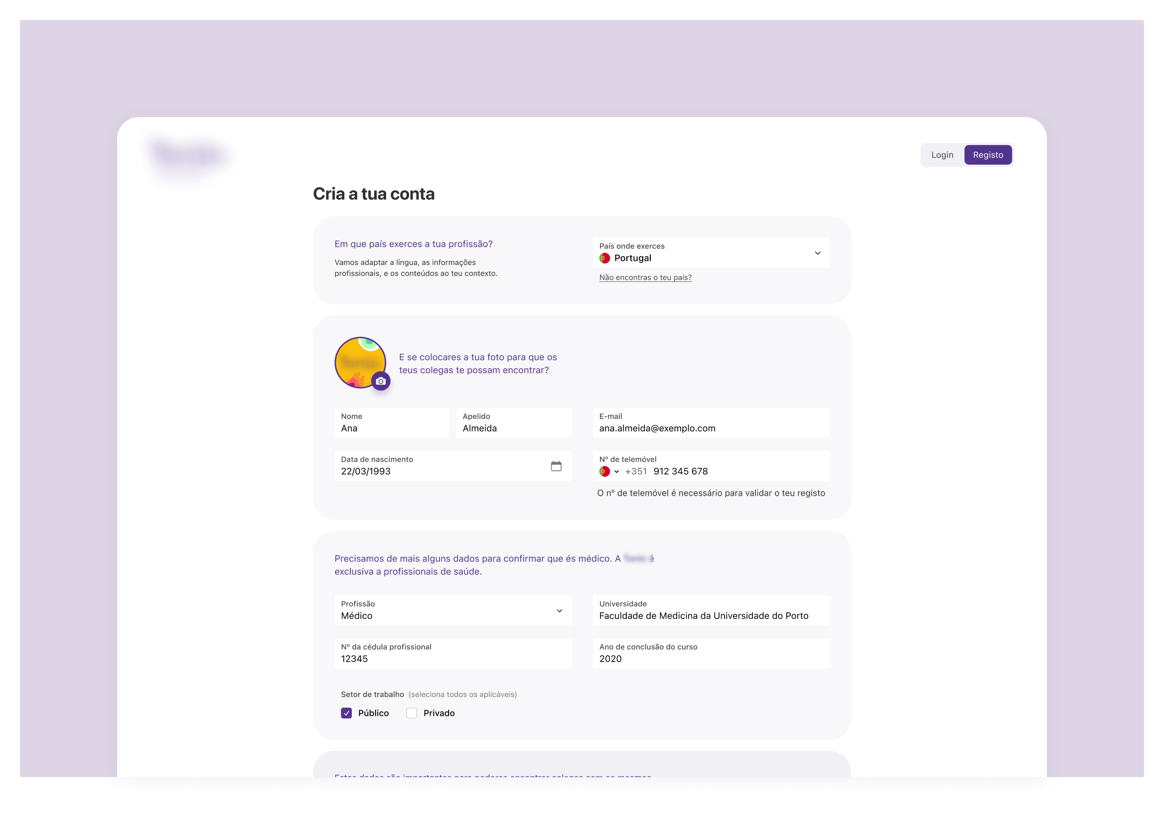Enabling web-based account creation for licensed physicians — establishing a desktop onboarding path for a healthtech platform.